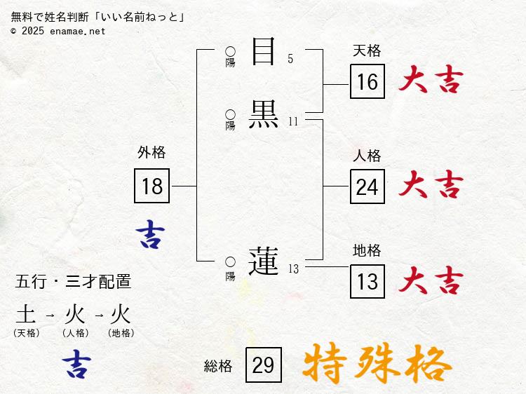 流石めめ、圧倒的大吉に加え何やら凄そうな格があります。特殊格とはなんなのでしょう。 総格が21、23、29、33、39だとめちゃくちゃすごいらしいです。圧倒的な運勢で地位や名誉をなすがままにできるとか。あながち間違いでもなさそうな感じがします。